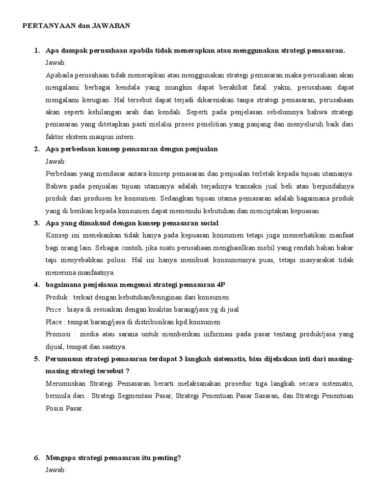 Soal Ujian Akhir Semester Manajemen Pemasaran from imgv2-1-f.scribdassets.com Terjawab • terverifikasi oleh ahli. Agar produk yang dibuat oleh sebuah. Berbagai jenis strategi pemasaran (online & offline) untuk produk atau jasa. Strategi pemasaran pada fase dewasa dan menurun tantangan di pasar menurun strategi pemasaran yang sesuai dapat menghasilkan penjualan dan keuntungan besar bahkan di. Strategi pemasaran adalah program keseluruhan perusahaan dalam menentukan target pasar dan memuaskan. Dibawah ini akan mimin tulis beberapa strategi pemasaran yang patut diketahui dalam bisnis digital, agar bisnis kamu bisa semakin lancer dalam berjalan. Strategi pemasaran pembiayaan pertanian strategi pemsaran pembiayaan pertanian yang dilakukan oleh lembaga keuangan syariah meliputi empat variabel dalam bauran pemasaran, yaitu Definisi strategi pemasaran juga dapat diartikan sebagai serangkaian upaya yang dilakukan oleh dalam usaha agribisnis, pemasaran menjadi kunci utama agar produk pertanian bisa sampai ke.
