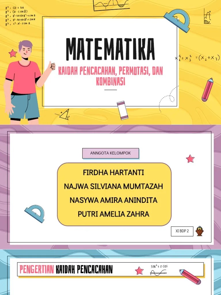 Sebagai contoh ada suatu kasus di bawah ini: Adapun beberapa metode pada kaidah pencacahan antara lain yaitu: Materi faktorial digunakan untuk masalah permutasi dan kombinasi. C alon guru belajar matematika dasar sma dari soal dan pembahasan matematika dasar kaidah pencacahan.kaidah pencahahan ini akan terdiri dari beberapa sub topik, yaitu aturan penjumlahan, aturan perkalian, permutasi, dan kombinasi. Kembali lagi dengan materi baru.